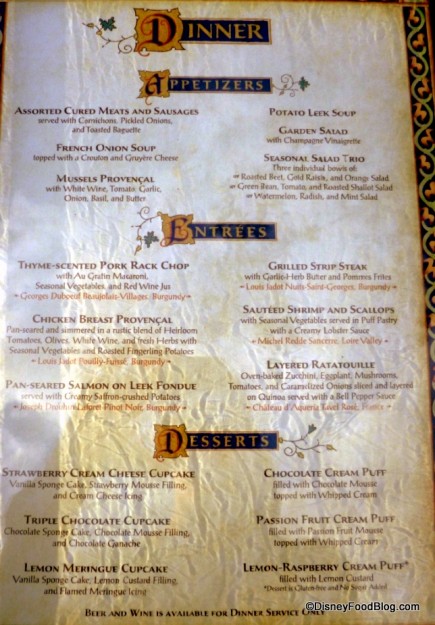 I hadn’t dined at Be Our Guest for dinner since last year, so I was excited to experience one of the more recent menu offerings!