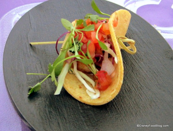 is a hip lounge, located steps away from the resort’s beautiful pool, is known for being a step up from your garden variety pool bars. For the Food and Wine Classic, they offered a delicious two-bite Blackened Fish Taco, garnished with fresh veggies.