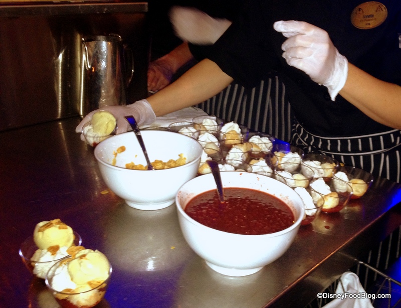 In addition to plated desserts, the culinary team were busily preparing Strawberry Sundaes for guests who preferred ice cream.