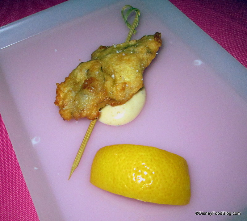Last year, Chef English created two dishes for the night we attended. We began with a perfectly fried Oyster, served with a Creamy Mustard Sauce.