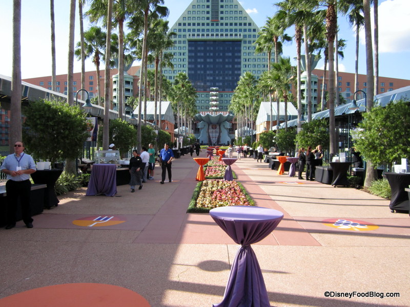 For this event, tents are lined up the length of the walkway between the Swan and Dolphin Resorts as well as along the walkway behind the Swan. The resorts are located within walking distance of Epcot and Disney’s Hollywood Studios.