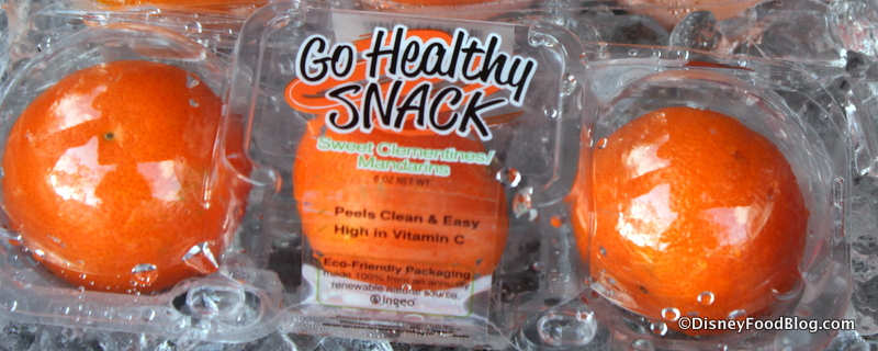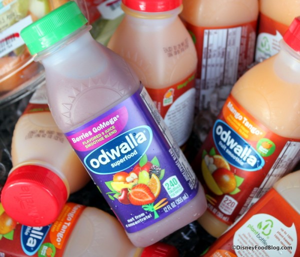 We love the fruit stands in the parks! At Harambe, we picked up the Odwalla Mango Tango smoothies for a quick lunch on a day when none of us were feeling up to a full meal. Here you find some of the most reasonably priced snacks at WDW, and definitely a break from too much fat, sugar, and salt.
