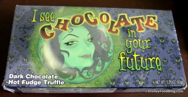 If you prefer dark chocolate, you may want to try these Haunted Mansion bonbons — Dark Chocolate Hot Fudge Truffle. Yessss. (Note: the Hot Fudge isn’t really hot inside the box. That would be weird. Though a chili-type heat would be fun… .)