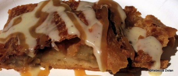 Germany: As someone who has never cared for cooked apple desserts, I’ll say the apple strudelwith Werther’s Original karamel and vanilla sauce is an exception. The apples were cooked to melting softness, and the addition of caramel sauce made this a great seasonal sweet. Watch out if you don’t like raisins, though.