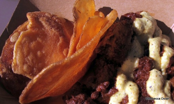 Terra: The Terra booth is the only one in the festival to make use of mock meat in its dishes. I don’t care for meat substitutes, but the chili Colorado with house-made chips and cashew cheese was a decent approximation for the real thing in both flavor and texture.