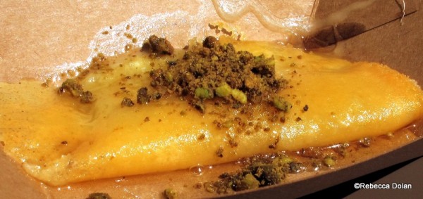 The griddled Greek cheese with pistachios and honey was the least impressive of Greece’s offerings. The lag time between cooking and service unfortunately gave it too much time to cool off, and therefore congeal. And, like the spanikopita, it was rather greasy.