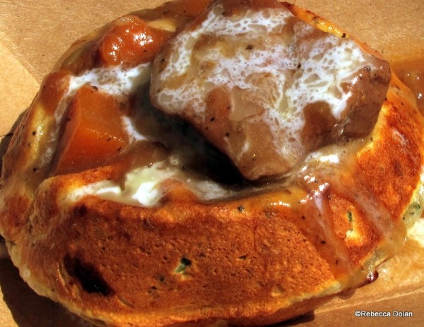 Belgium: Though we weren’t able to get a proper photo, the potato and leek waffle with braised beef here is available vegetarian without the beef, according to a booth staffer.