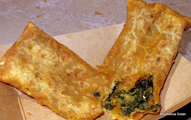 The spinach and cheese paneer pocket was one of my favorite vegetarian noshes. Since it’s fried, it can be a tad heavy, and perhaps not the best on a scorching Florida afternoon. The golden flaky pastry exterior yields to a filling that’s much like the saag paneer you’d find at an Indian restaurant.
