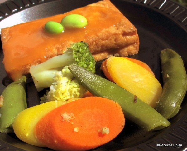 Japan: Japan’s youki tofu topped with miso sauce and edamame and served with grilled vegetables was the most disappointing of the bunch. It was nothing more than a plain, spongy brick of tofu plated aside steamed vegetables (of the frozen medley variety). Nothing to see here, folks.