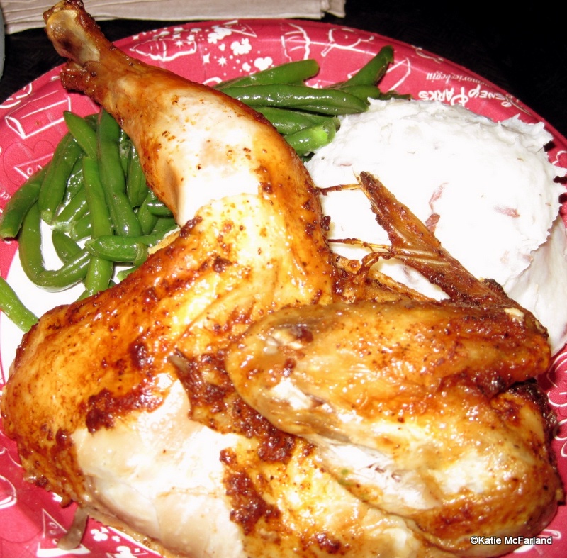 It really is amazing how much chicken they give you for this counter-service meal though! The green beans were tender, not squeaky, and really buttery. Again, we would have preferred less butter. In the past, the beans have been perfect…must have been a newbie on board. The mashed potatoes were creamy, flavorful with the right amount of butter and spices, and comfort-food warm.