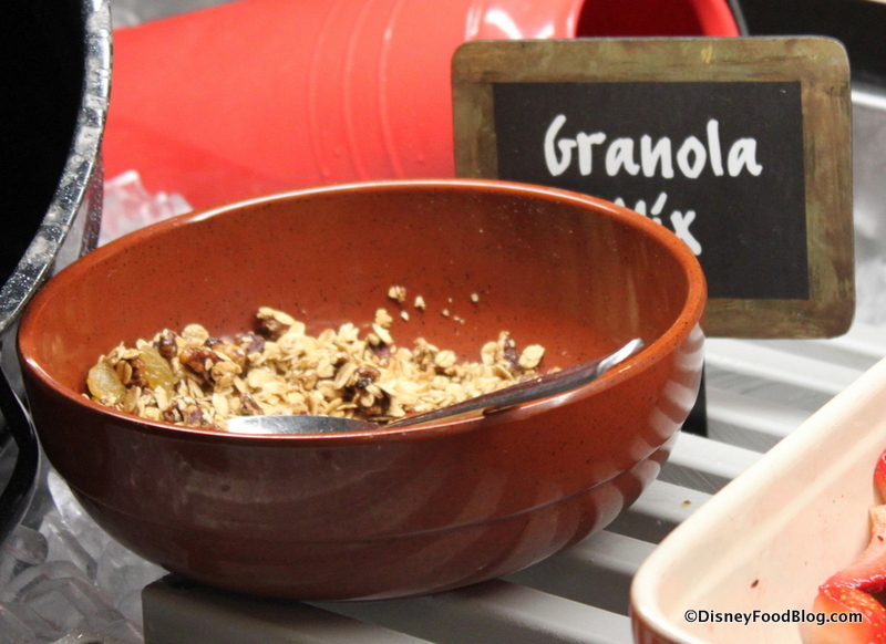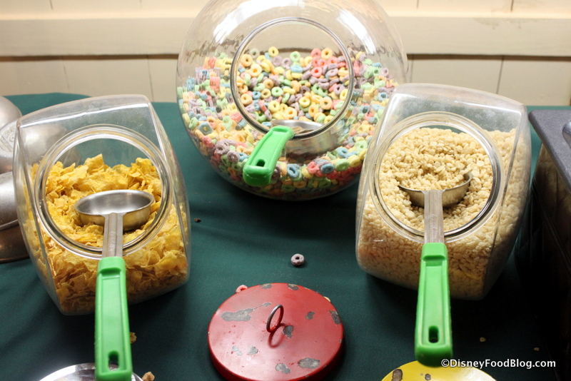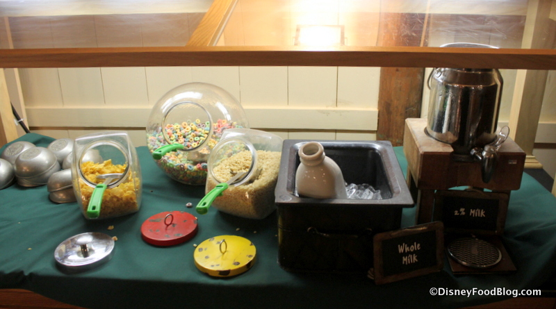 Cereal lovers will also find some options, and milk is available for you right on the bar. This is super convenient, since you often have to ask your server for milk at many Disney buffets.