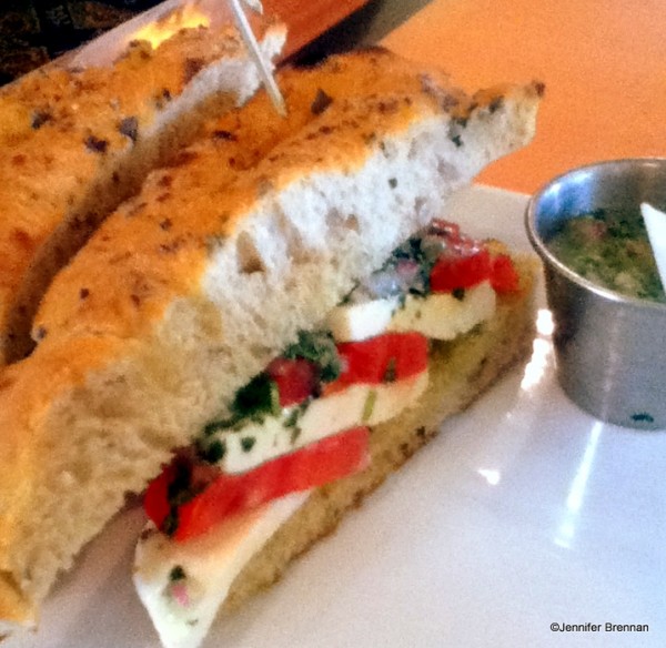 DFB Reader Jennifer emailed us a picture of the Tomato and Mozzarella Sandwich at Captain’s Grille. She says “… It’s served on Foccacia bread with an arugula & red onion vinaigrette. It’s served with orzo salad or French fries. … It is my favorite lunch of all time.