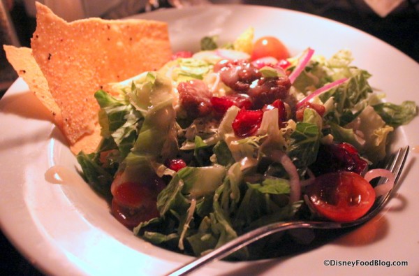 My husband opted to start with the Blue Bayou House Salad. It’s a really beautiful dish, topped with a Candied Pecan garnish and served with Lavash. The dressing is a light and flavorful Vinaigrette.