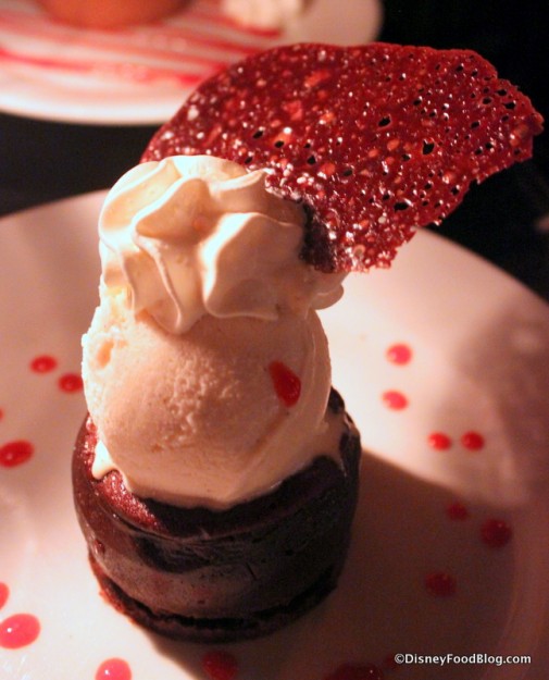 But the real showstopper here was the inside of that cake. Once we got a fork into it, we could see this amazing filling, which was like a cross between Hot Fudge and Ganache. This was quite good.