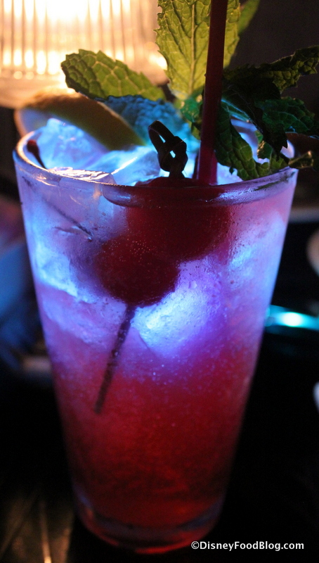 Now, besides being fruity and delicious, with the lemon flavor offsetting the sweet Mango and Raspberry, it was also seriously fun with the addition of a glow cube. These are not as prevalent in Disneyland as they are in Disney World, so it was fun to find this one here.