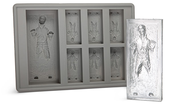 Problem solved. These Star Wars Deluxe Silicone Molds come in your choice of the Falcon, R2D2, or Han Solo. They measure 11″ x 6″ x 3″, and are freezer and oven safe!