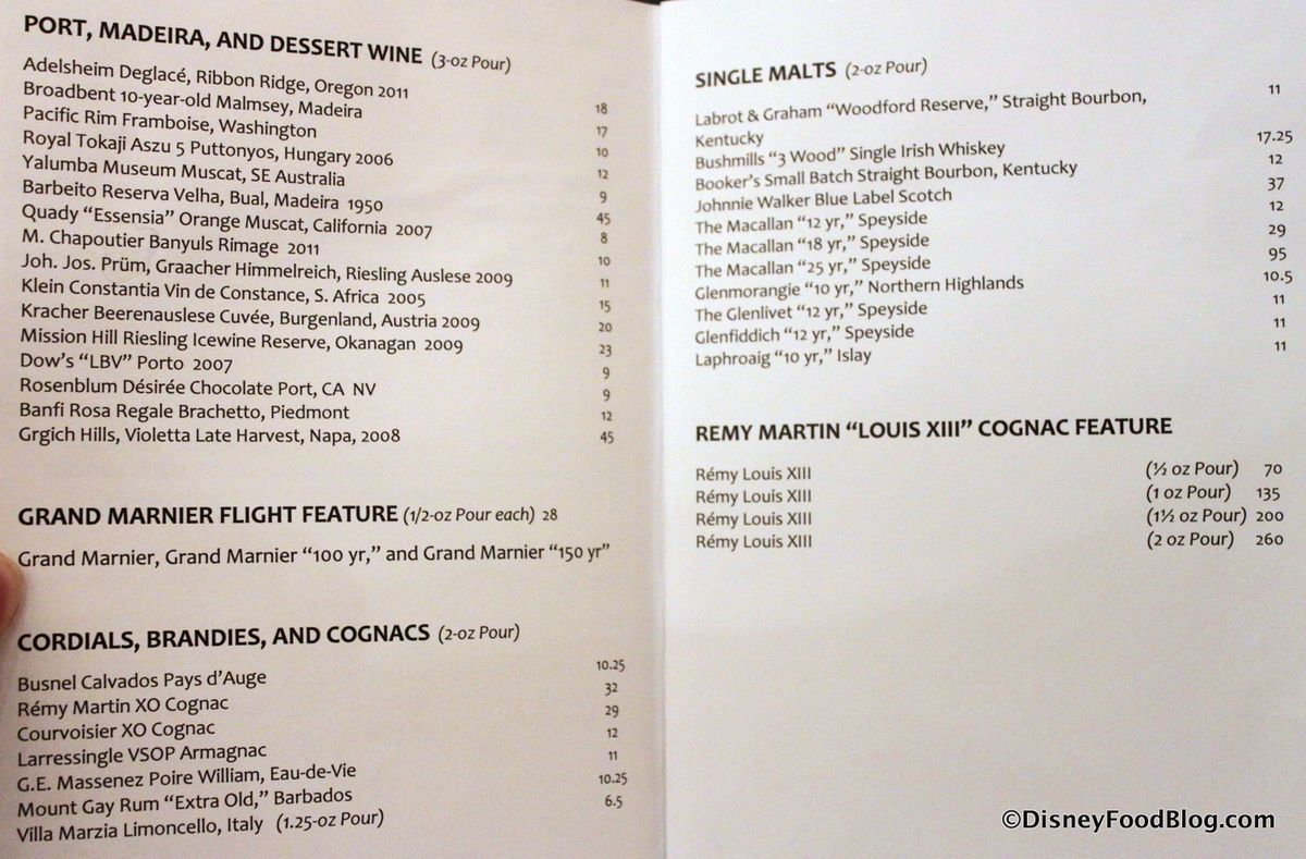 Guests can also choose from the After Dinner Drink Menu in addition to or in lieu of a dessert.