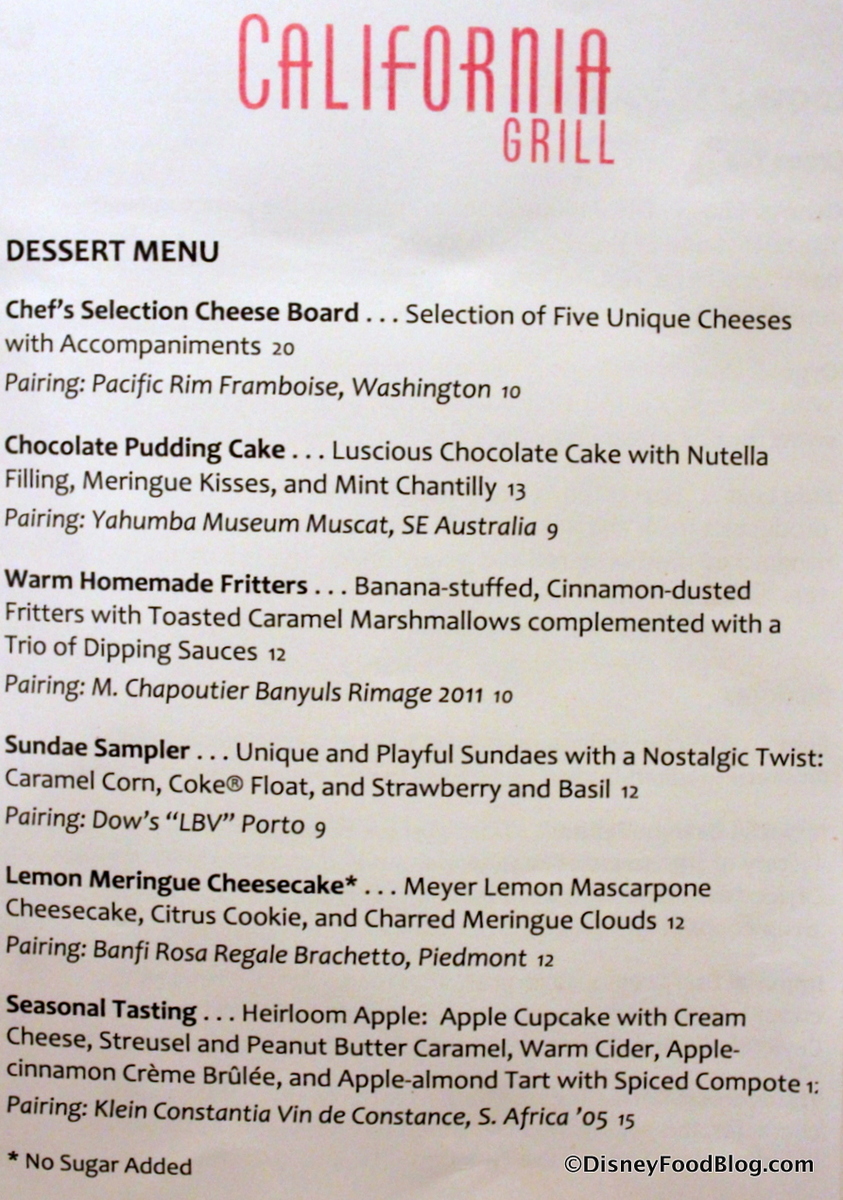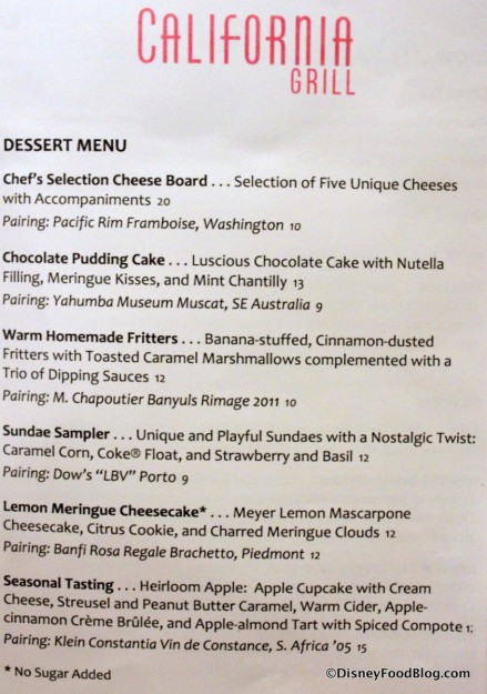 After a disappointing turn in the meal, we were hoping that dessert would prove to be a bright spot. As with the main menu, many of California Grill’s desserts have been updated or are brand new.
