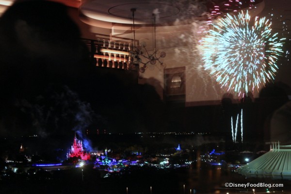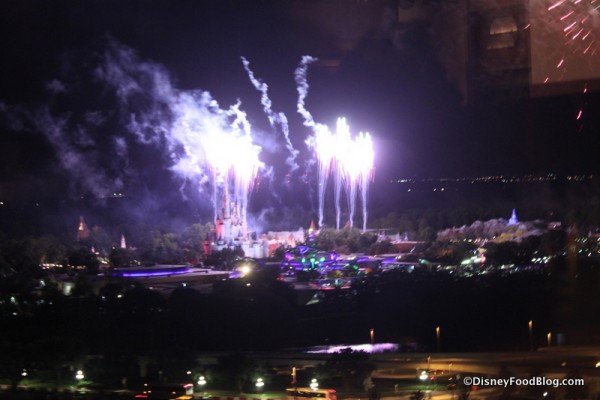 As I’ve mentioned previously, time your ADR just right, and you can witness the fireworks from Magic Kingdom from this most magical of vantage points. Choose to sit inside the restaurant, where the lights are lowered and the music and narration for the show is piped in. Or take in the view outside from one of the Grill’s observation decks.