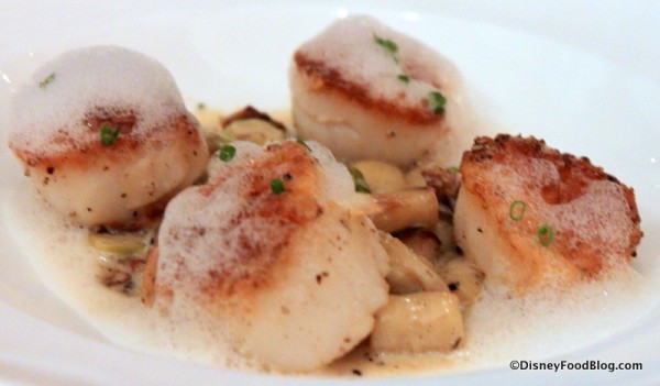 Entree for me were the scallops and they were not salted. Cooked just right and the rest was rich and well fleavored. I didn’t taste much of the parmesan foam. I loved the dish.