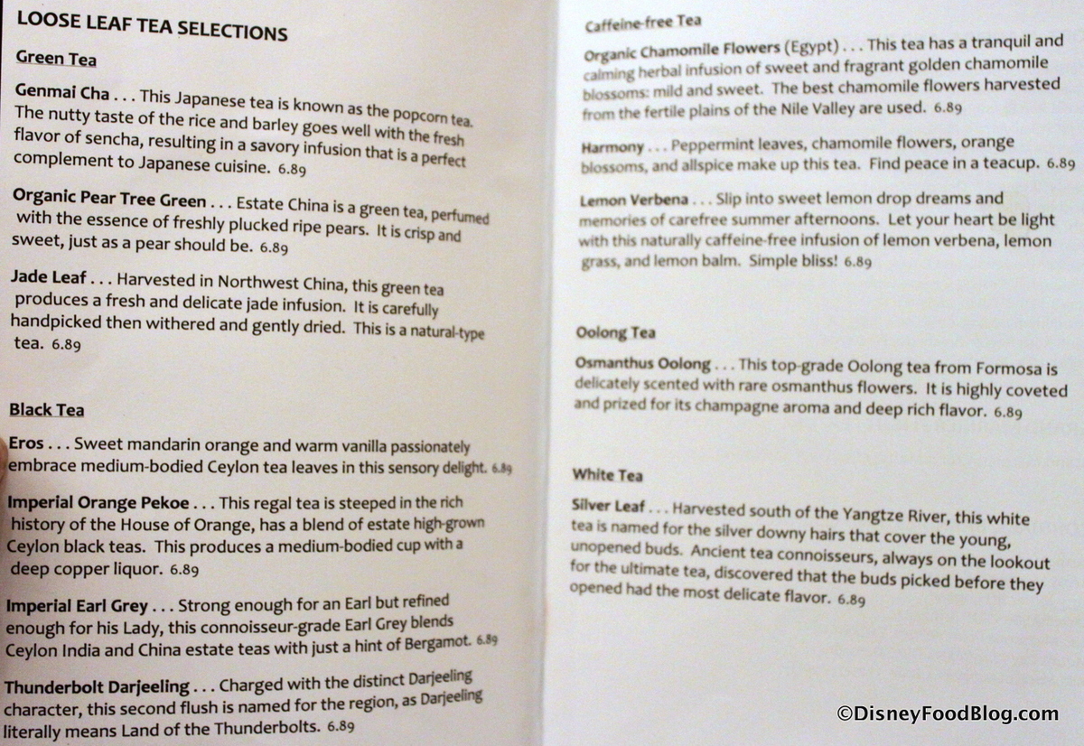 There are also a wide range of tea selections.