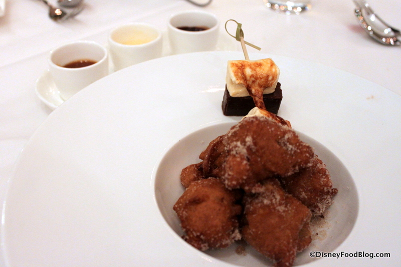 Warm Homemade Fritters were also cute with their trio of Dipping Sauces, and these were a hit at the table! We each enjoyed a different dipping sauce, so that worked well! I liked the more rustic and freeform dessert at such a fancy-schmancy restaurant!