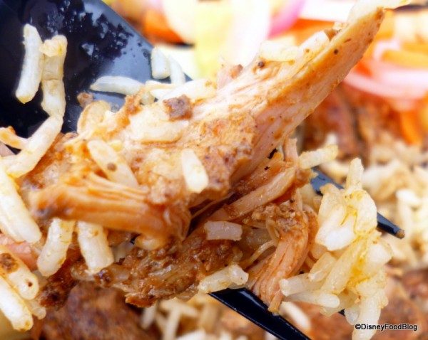 However, once I dug in, I was able to better appreciate this version of the dish for what it was. The chicken was flavorful and so tender that it practically fell apart on my fork, and the white basmati rice was prepared just right.