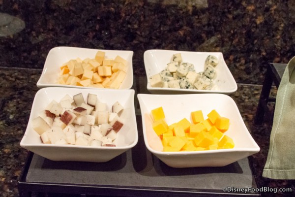 The breakfast, snacks, and dessert was pretty much always the same (except for the hot dessert option), but I would always get excited to find out what the “dinner” option was going to be during the wine and cheese hour! And we were totally able to make a full dinner out of it by making a couple trips – if only the plates were bigger 🙂 haha!