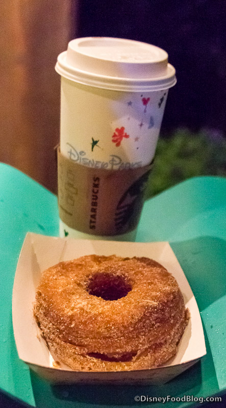 On the menu at the Refreshment Port (the understated powerhouse that has brought us the incredible spicy chicken and cheddar poppers in the past), your cronut can be had for $4.49 or a Disney Dining Plan Snack Credit.