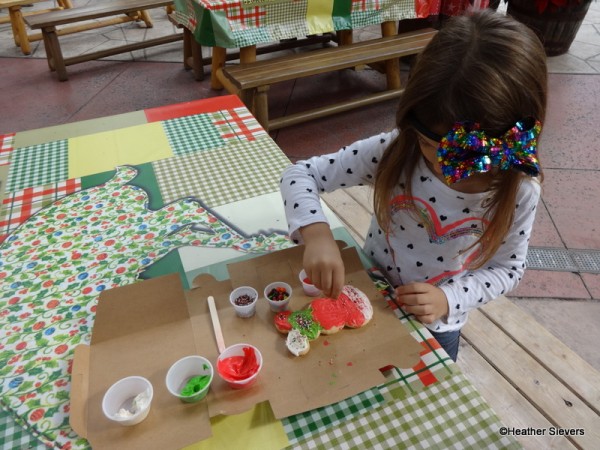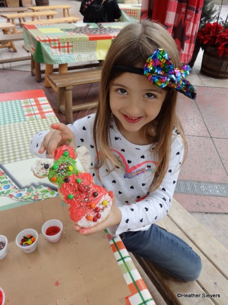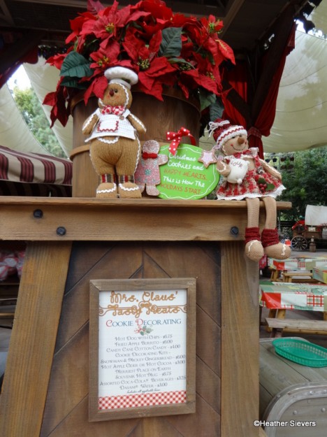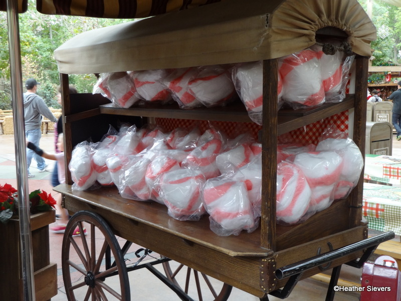 Our visit included the “Candy Cane” Cotton Candy & some Cookie Decorating. Let me break the sad news to you first. The cotton candy here DOES NOT taste like candy canes, it’s just “candy cane striped.” Even the cast member that I bought it from thought that it was peppermint flavored, but alas, that is a rumor. It’s still pretty though!