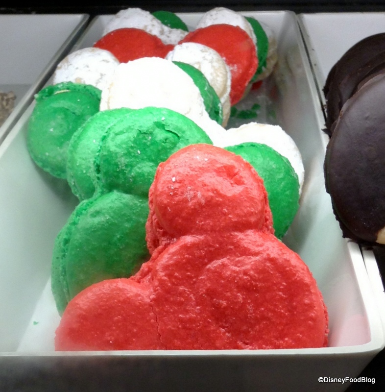 Over at Writer’s Stop, the Mickey Macaroons and Sugar Cookies have received red-and-green makeovers… the perfect snacks to snag before being dazzled by The Osborne Family Spectacle of Dancing Lights!