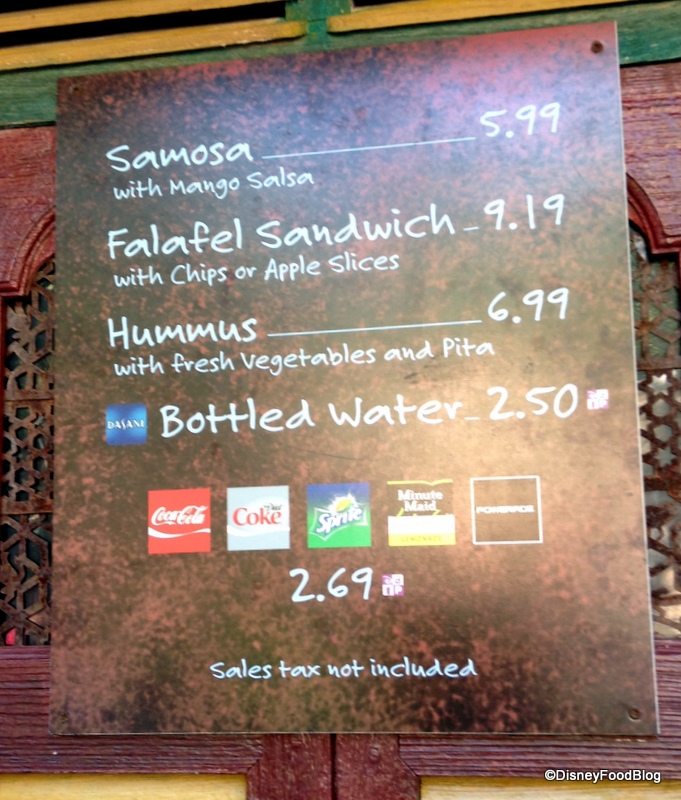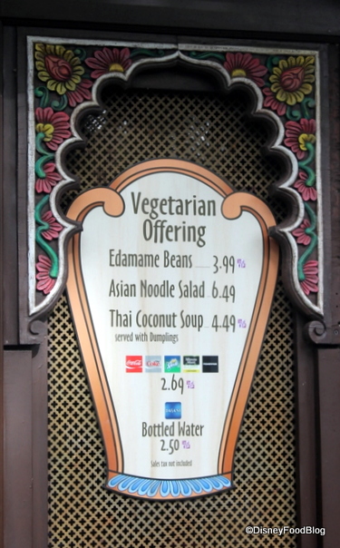 The vegetarian carts at Animal Kingdom are a big improvement over what was available before in that area (the Yak and Yeti outdoor counter service still has nothing meat free except fries). I had the coconut soup which was pretty good, lots of veggies, big wontons. I didn’t get to try the samosas this last time, but I remember eating them before and they were good then. Wish I could remember where else I got them.