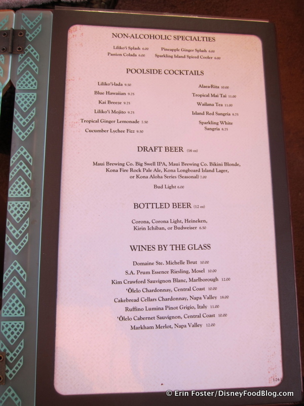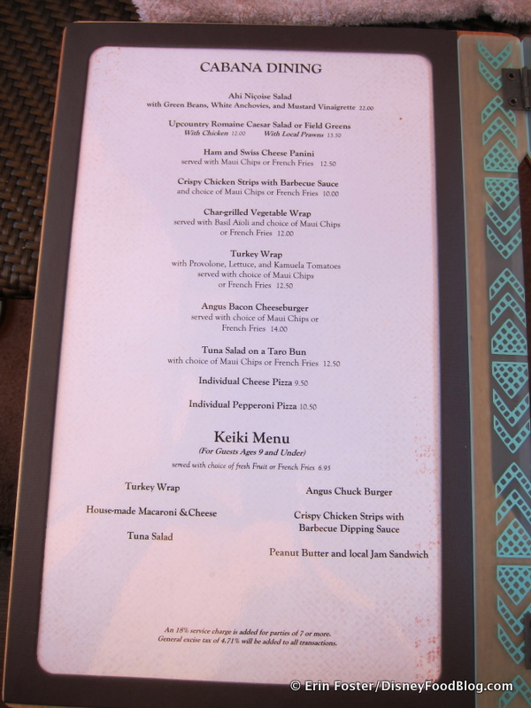 We were there last June & while we didn’t have the chance to stay in a cabana, we did order food & drinks poolside. My daughter loved the chicken strips & fries. The cucumber lychee fizz & fruit plate look yummy! Next time we go to Aulani, I’ll give it a try!