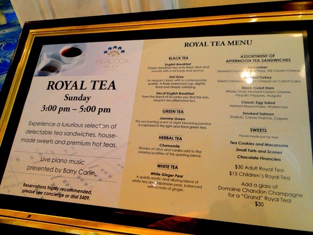 Thanks for the review….I wasn’t aware they had a Royal Tea. Peacock Alley really deserves more attention as the food and cocktails are fantastic for dinner as well.