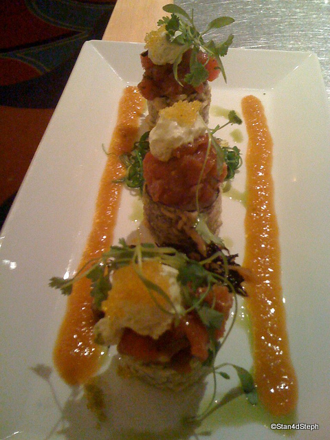 Yellowfin Tuna Tartare and Crispy Tempura Tuna-Vegetable Sushi Roll…. This is absolutely marvelous.