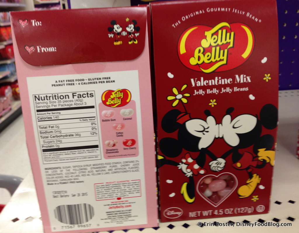 The last items I saw with the retro theme illustrations were Utz brand chocolate-covered pretzels, shaped like our favorite mice, and a Valentine mix of Jelly Bellys. The jelly bean mix includes bubble gum, coconut, cotton candy, strawberry cheesecake, and very cherry. I’m not really feeling the combo, but the box sure is cute.