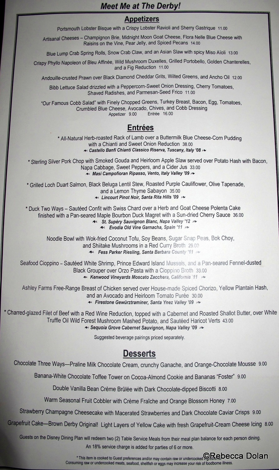 The Brown Derby’s contemporary American menu isn’t lengthy, but provides a nice amount of variety. Don’t be put off by the level of detail when it comes to its descriptions; the food’s not too hoity toity. (Note: This is a two-credit restaurant on the Disney Dining Plan.)