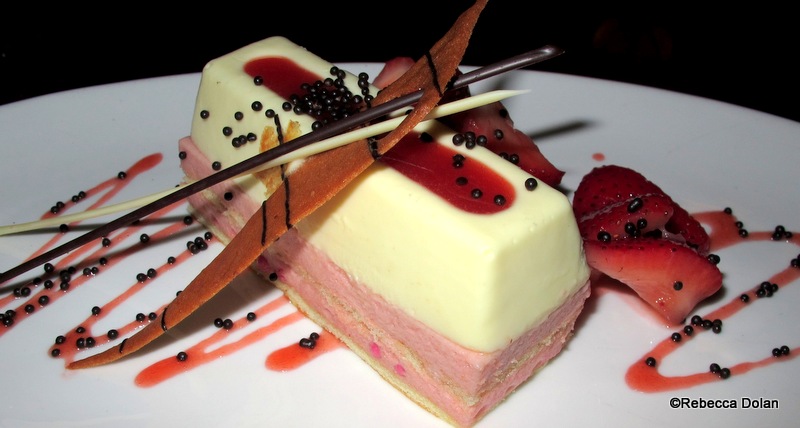 I can’t say I was as pleased with the strawberry champagne cheesecake. The cheesecake layer, which sat on a layer of strawberry mousse, was much less dense than traditional cheesecake, and more like a cheesecake mousse. But, the real disappointment was that it oddly had no flavor.