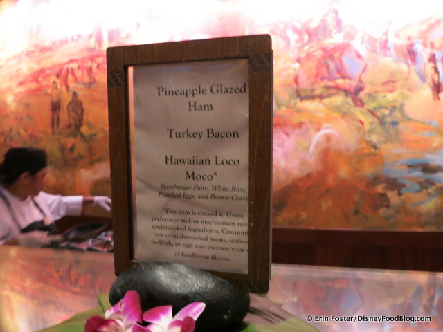 With this amazing sense memory, I was hooked! And I was thrilled to find a slightly different version of the Loco Moco the next morning when we dined at Makahiki, Aulani’s character buffet table service restaurant.