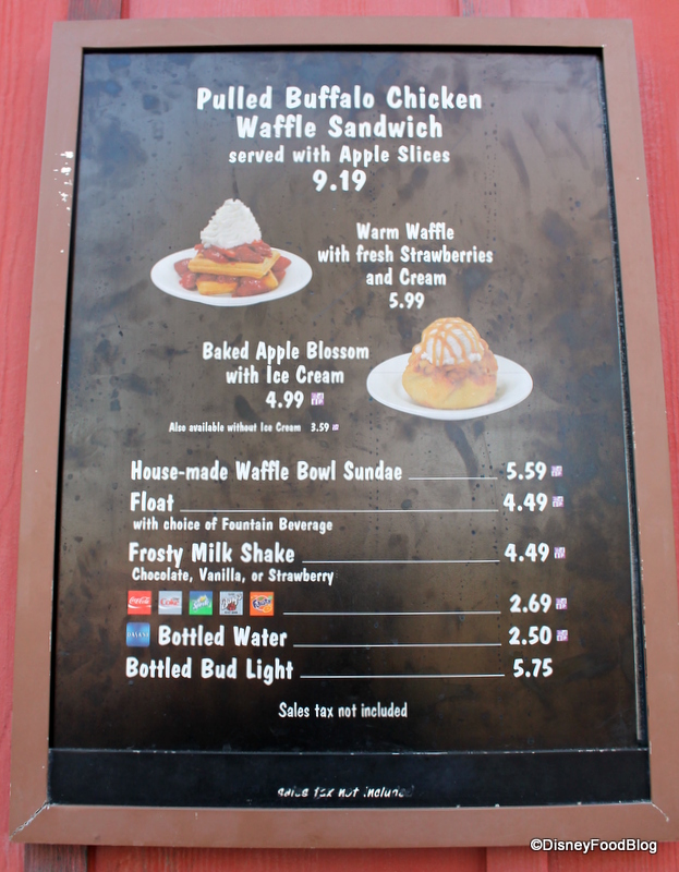 I’ll take my waffle warm with strawberries. The apple blossom looks good, too. But the pulled chicken waffle sandwich looks too overstuffed, overdressed, and probably too spicy for me. Not that I mind a little spice, but sometimes less is more.