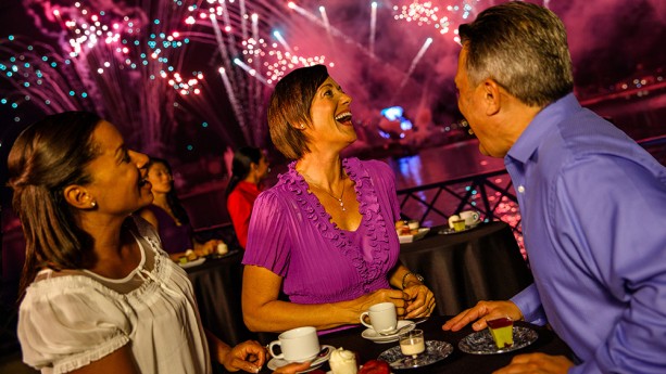 Guests will enjoy the “best desserts and sparkling wines from all around World Showcase” while viewing IllumiNations: Reflections of Earth from an exclusive area in the Showcase Plaza.