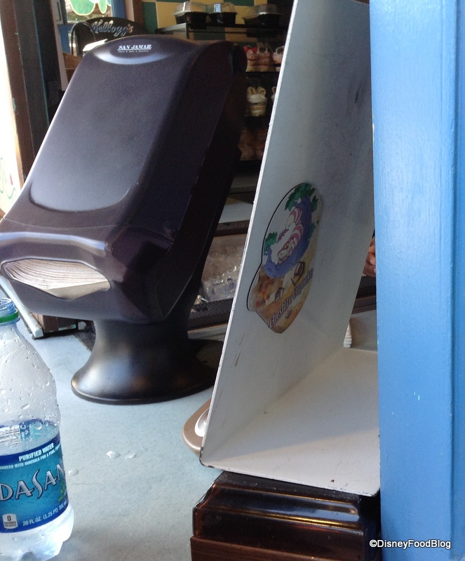 In case you’re wondering what’s happened to the previous Cake Cups… I noticed a little something on my visit. The Cake Cups on the sign are magnetic, and get switched out with the Cake Cups that are available that day. I spotted the Cheshire Cupcake Cake Cup magnet on the back of the sign, so it’s not gone for good we hope.