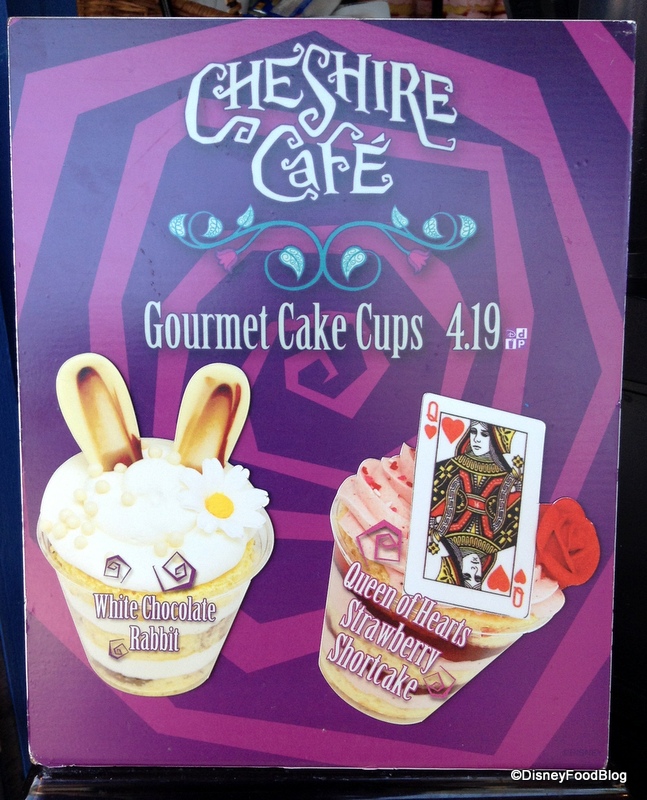 We decidedly to try these cake cups last night 3/22/15. I was hoping to try the Strawberry Queen of Hearts, but they were only offering the White Chocolate Rabbit and the Chesire Cat. They said they change them every month or so. I was surprised since strawberry season is in full swing here in Florida.