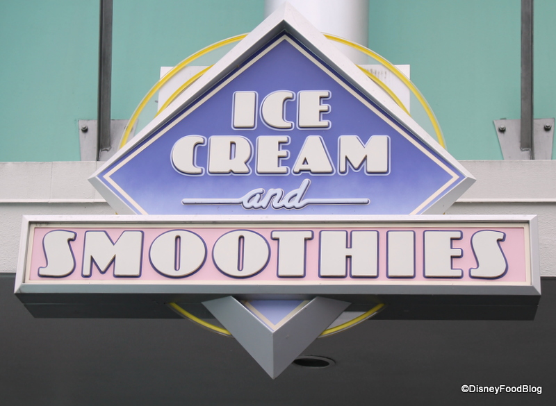 You can find this spot in Tomorrowland across from the Tomorrowland Speedway. The menu features – as the outdoor sign indicates – smoothies and ice cream. You can read our review of both a smoothie AND an ice cream sundae here!