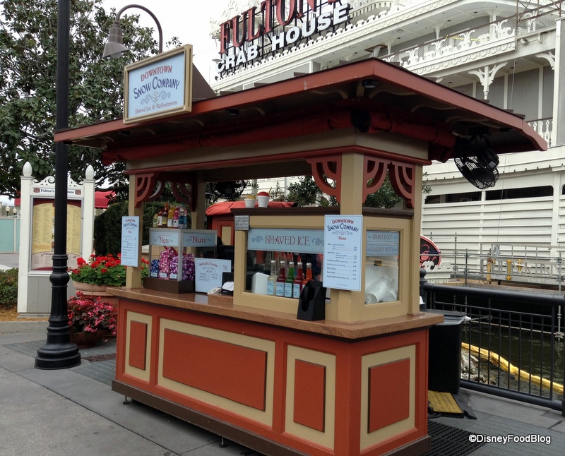 You’ll find the Downtown Snow Company kiosk on the path from Marketplace to Pleasure Island.