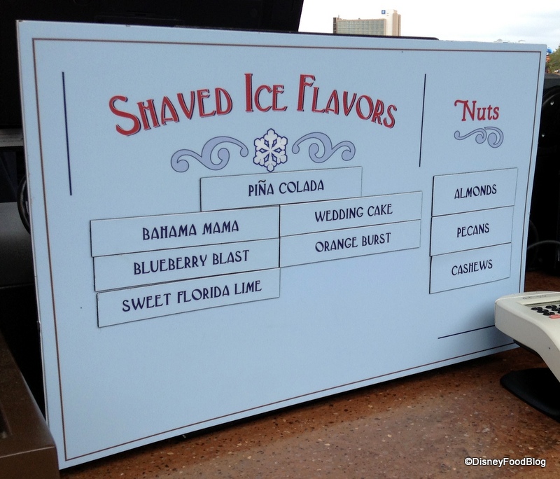 Never had it at Disney, but Wedding Cake is one of my favorite shaved ice flavors! If you can get half wedding cake, half vanilla topped with cream- that is THE BEST! (I find it really weird they don’t have vanilla on the list…)