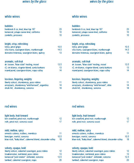 Since our last visit (and bluezoo review) when Chef Windus was still at the helm, the menus have been updated.