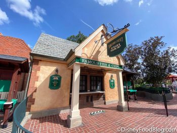 This was my first WDW dining tradition, too! My wife and I love getting fish & chips and sitting in the courtyard and listening to the music. We LOVED the British Invasion band that was here for years. We miss them very much!