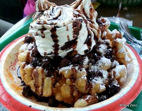 Next up, Terry shares a chocolate funnel cake from the Hungry Bear Restaurant.