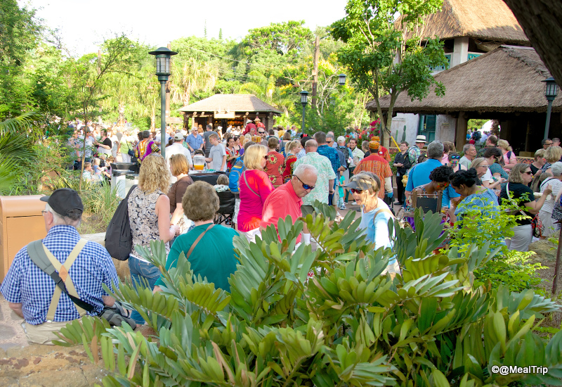 I thought the food was generally worthwhile. The portions were perfect. Small enough to try everything and not feel guilty throwing it out if it was something you didn’t like. I think the reviewer may not have explored all the seating areas, because through wandering, I found many many unused tables all throughout the Harambe area. The number of food stations was completely sufficient so there really was no extensive waiting for anything.